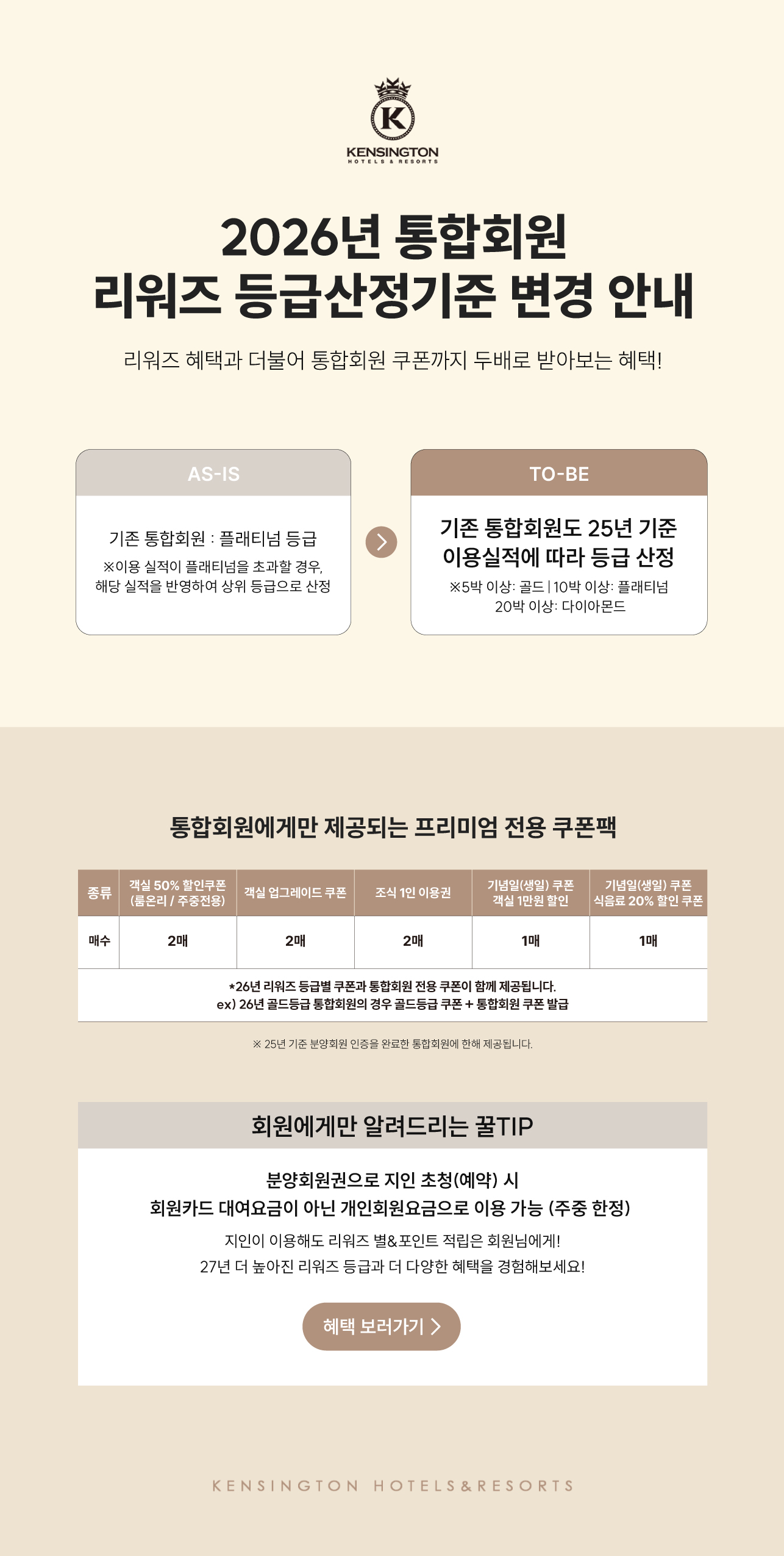 home 고객지원 공지사항 자주하는 질문 1:1문의 이용문의 자료실 당첨자 발표 고객지원 공지사항 자주하는 질문 1:1 문의 이용문의 자료실 당첨자 발표 [분양회원] 2026년 통합회원 리워즈 등급산정기준 변경 안내 전체 분양회원 2025. 12. 16 목록