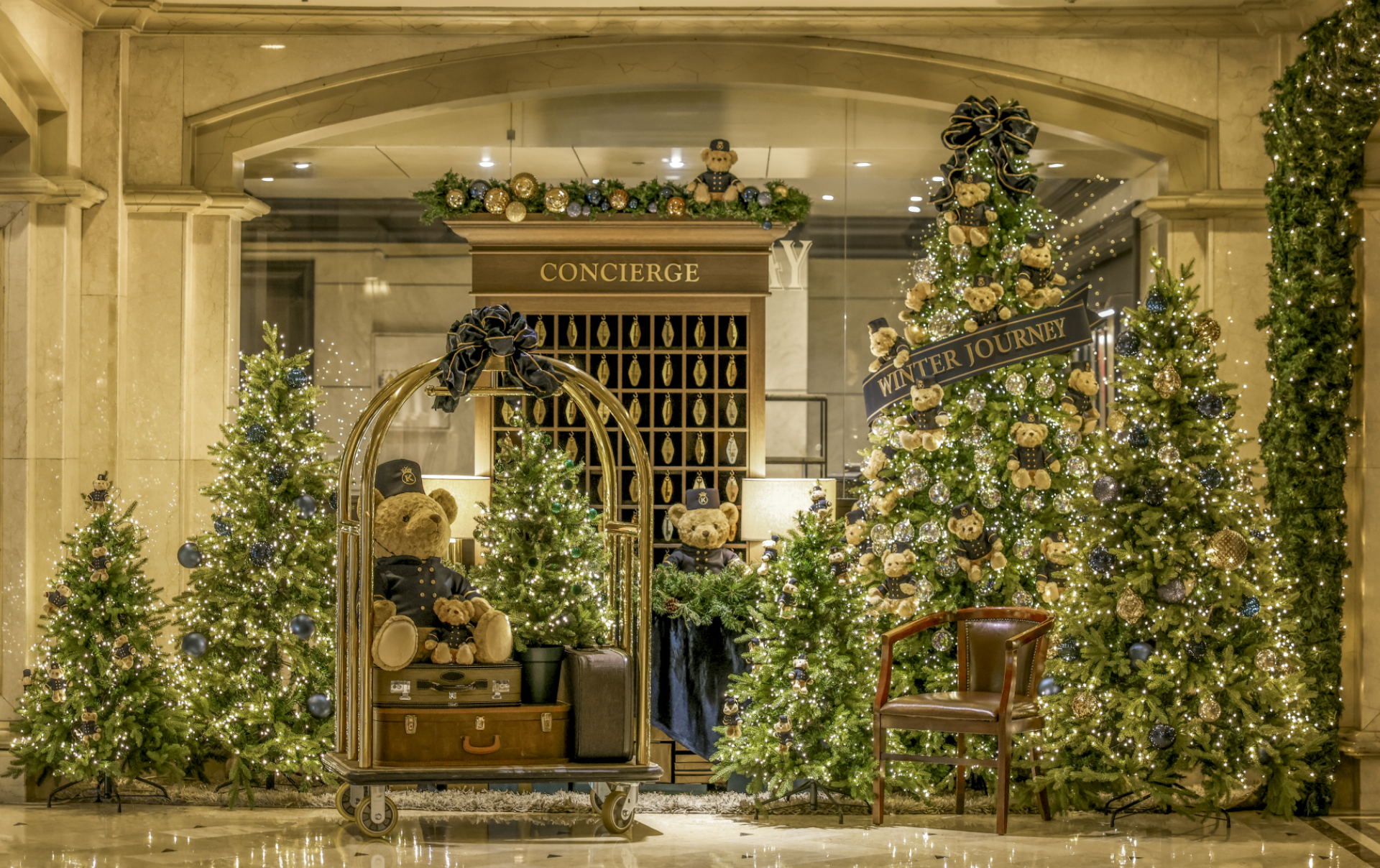 반짝이는 불빛과 켄싱턴 베어로 가득한 켄싱턴 시그니처 트리를 만나보세요.