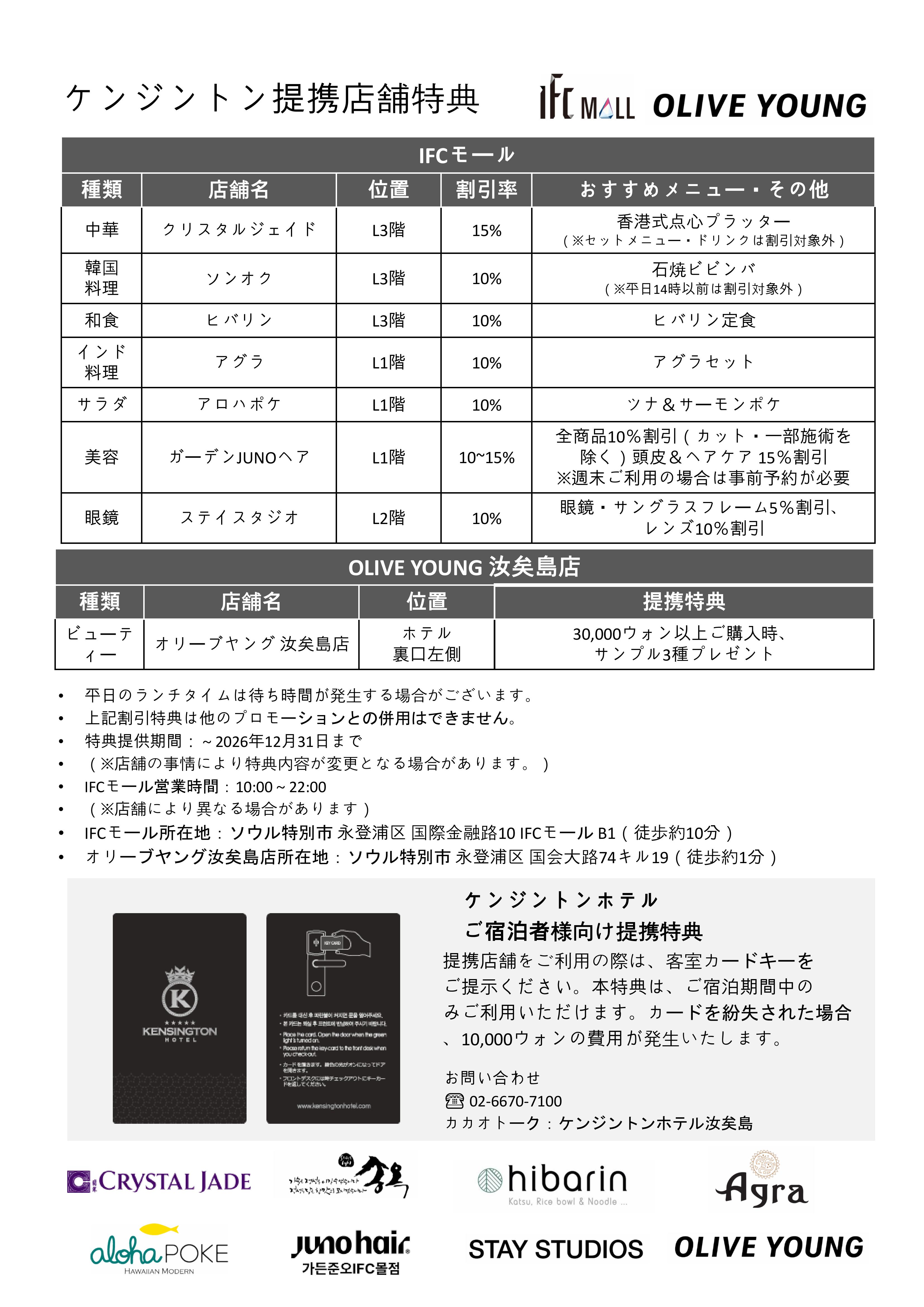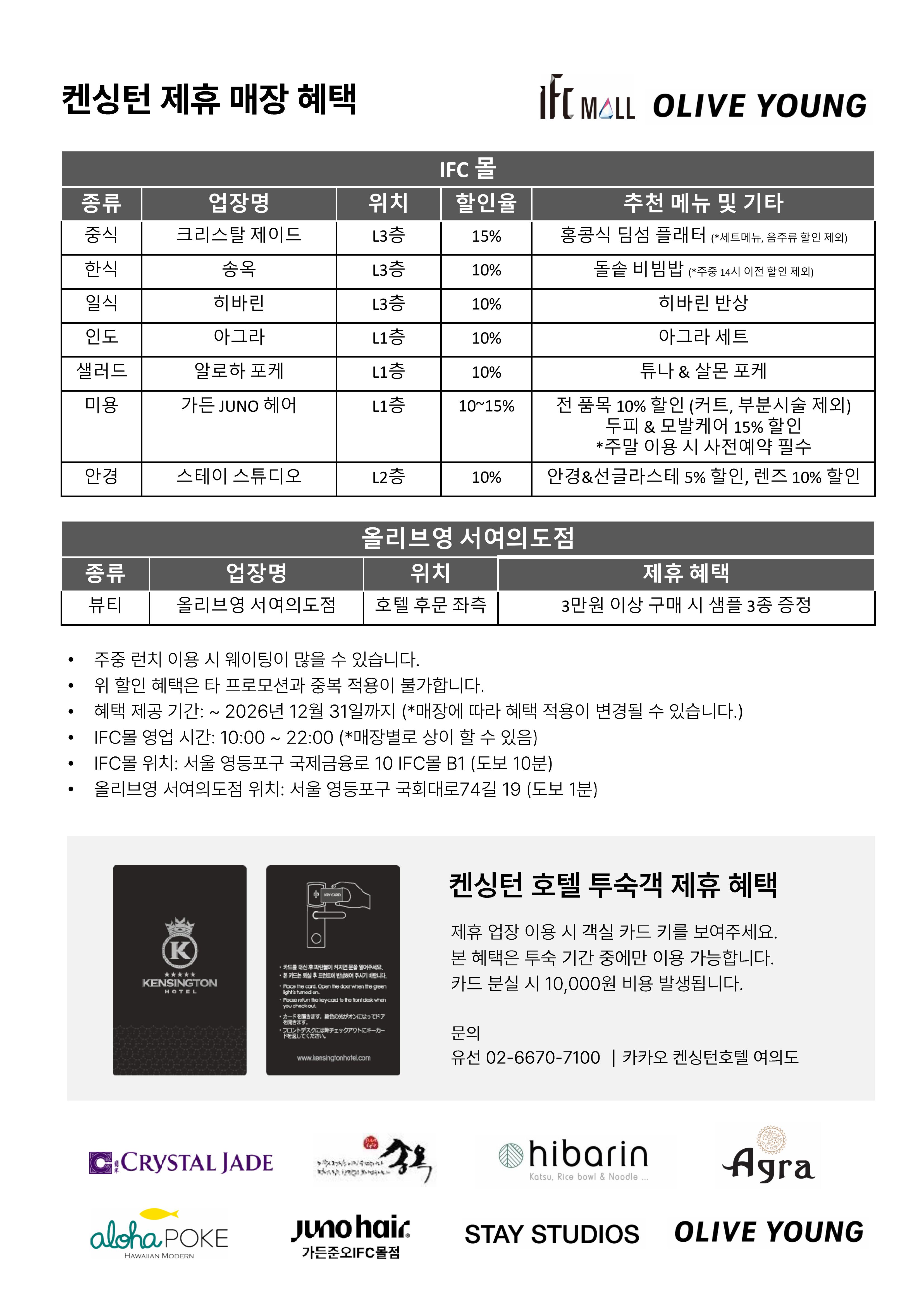 켄싱턴 제휴 매장 혜택 (IFC몰, 올리브영)