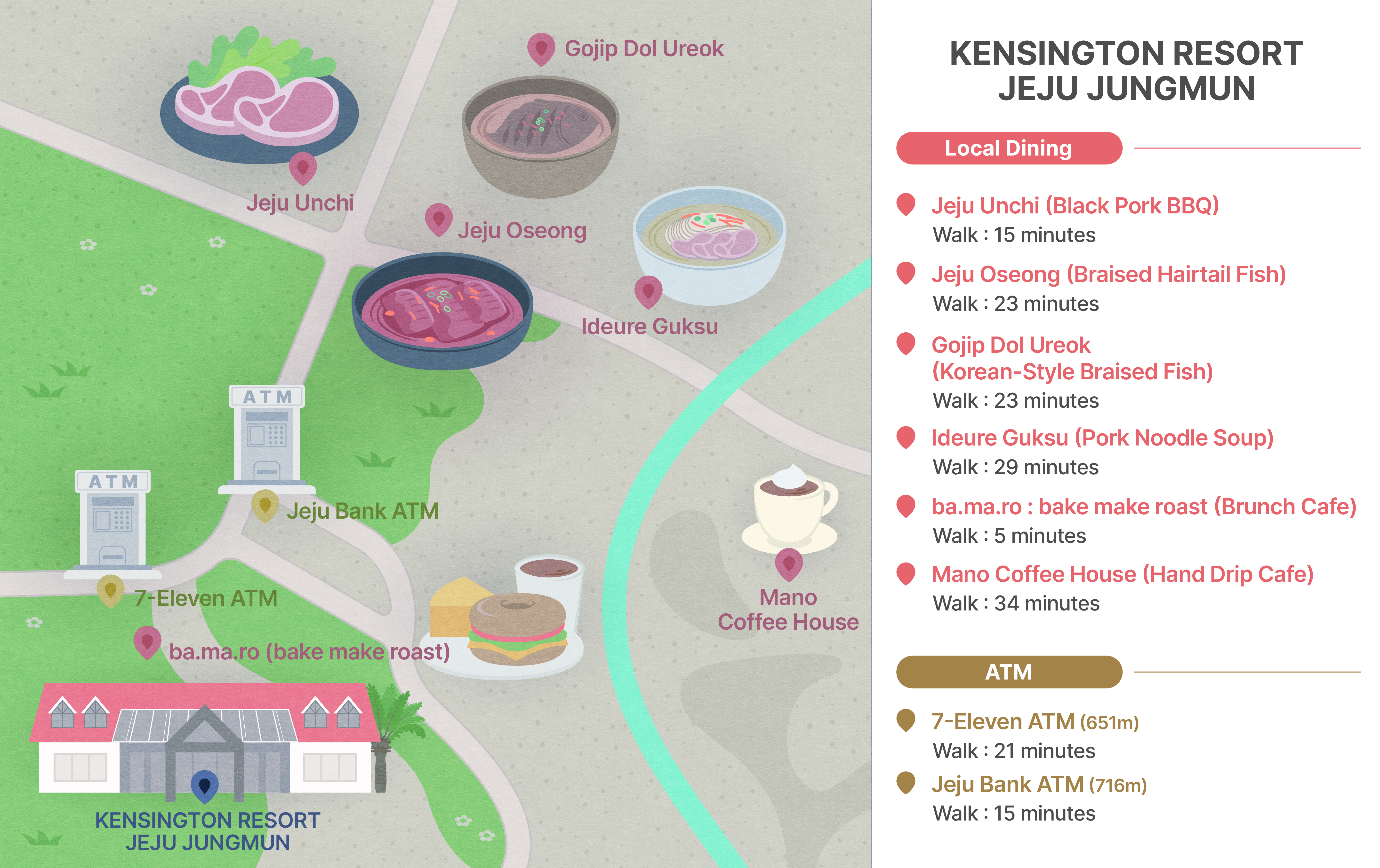 Local Attractions, Dining & ATM Guide near Kensington Resort Jeju Jungmun (English ver)
