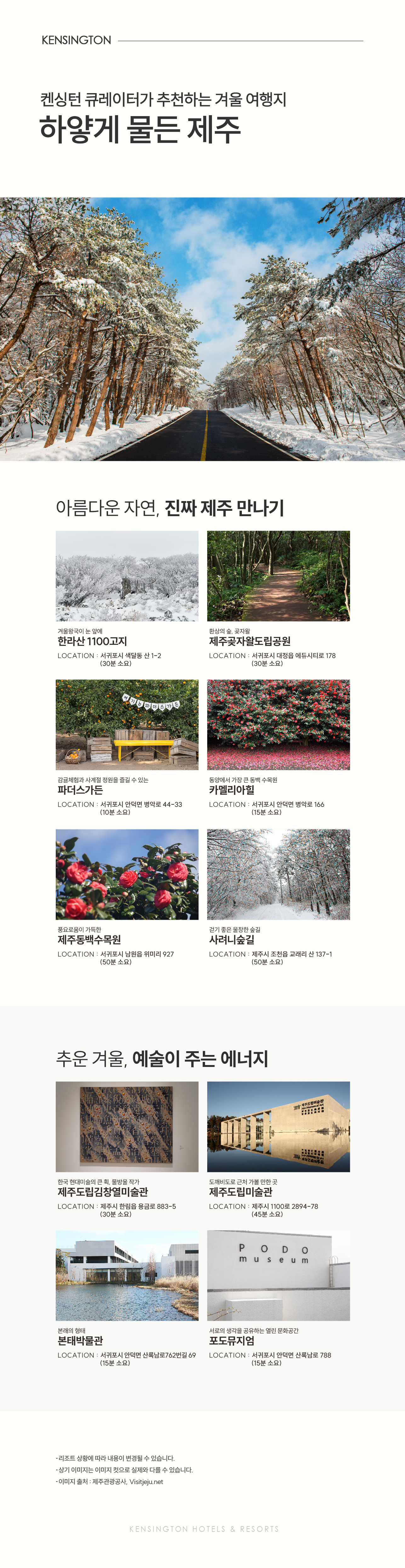 home 프로모션 객실 다이닝 웨딩&연회 부대시설 액티비티 리조트소개 OVERVIEW 패키지 다이닝 & 이벤트 지점소식 지점소식 ▶ 케니가 추천하는 겨울 여행지 2025. 10. 30 . 목록