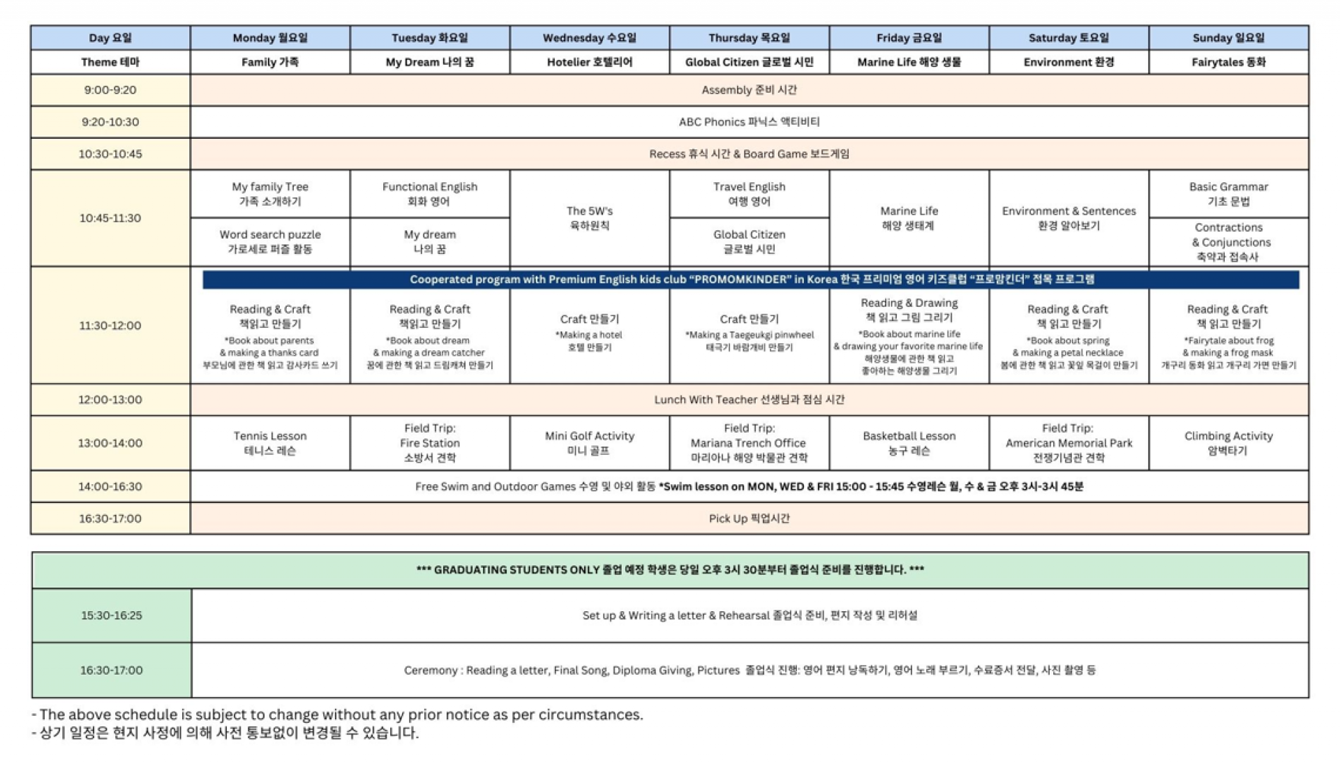 - 홈페이지 예약은 키즈 잉글리시 아카데미 패키지로 가능합니다.