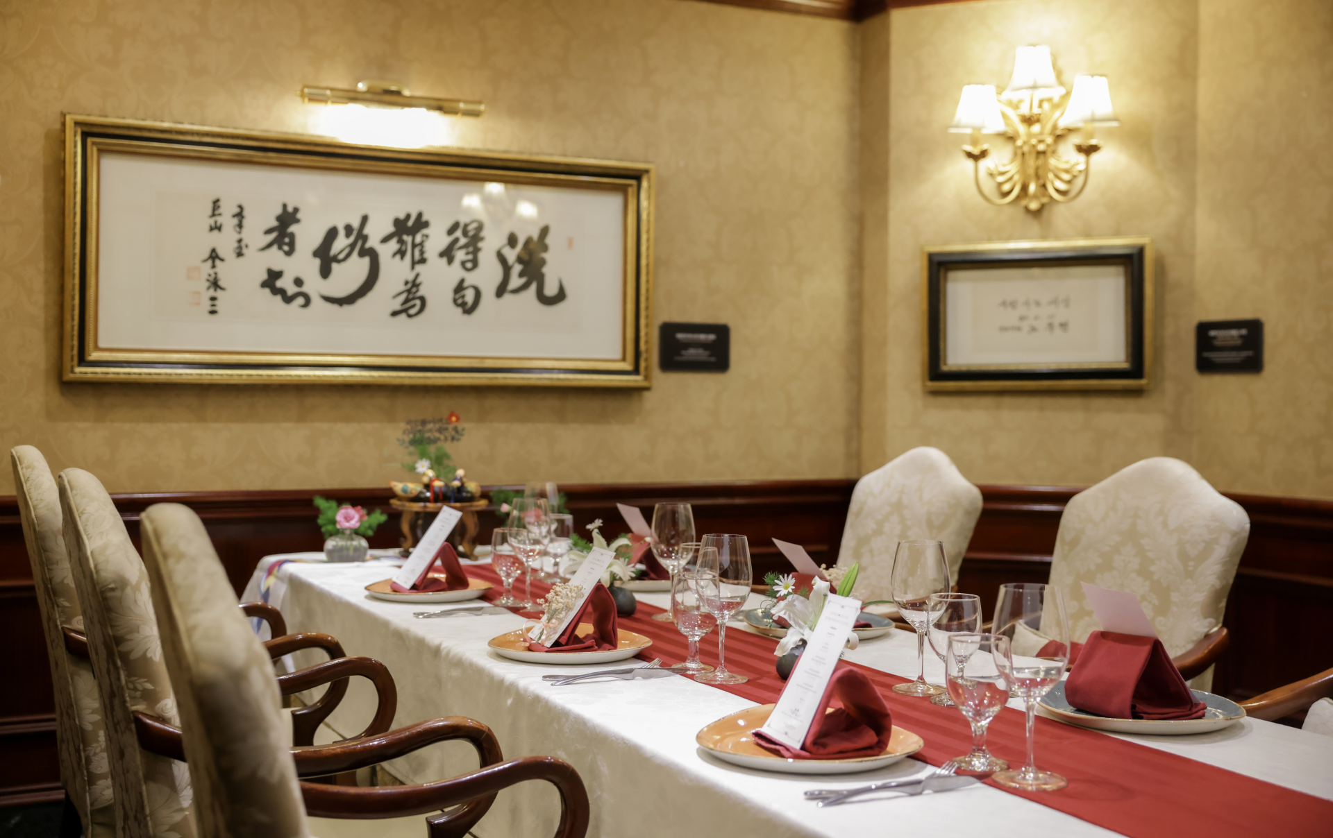 룸 선배정 우선권|상견례 오브제 세트|양가 어머님께 준비되는 미니 부케|예비부부 이름이 새겨진 쁘띠 메뉴지