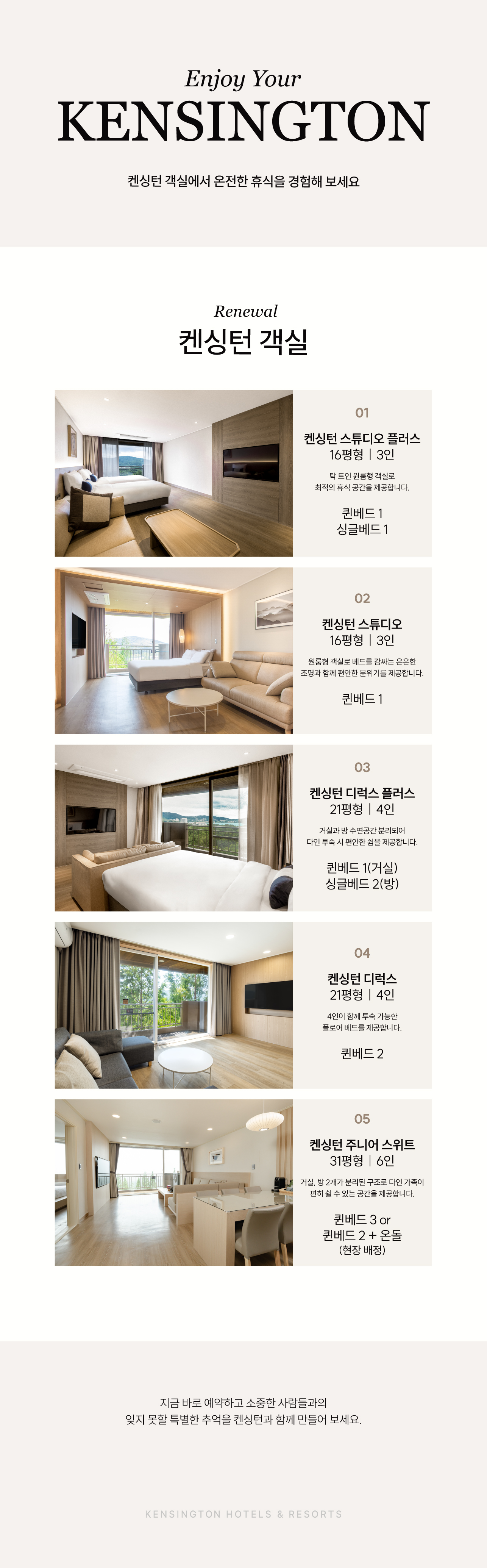 • 쾌적한 환경을 위해 전 객실 및 부대시설은 금연구역입니다.