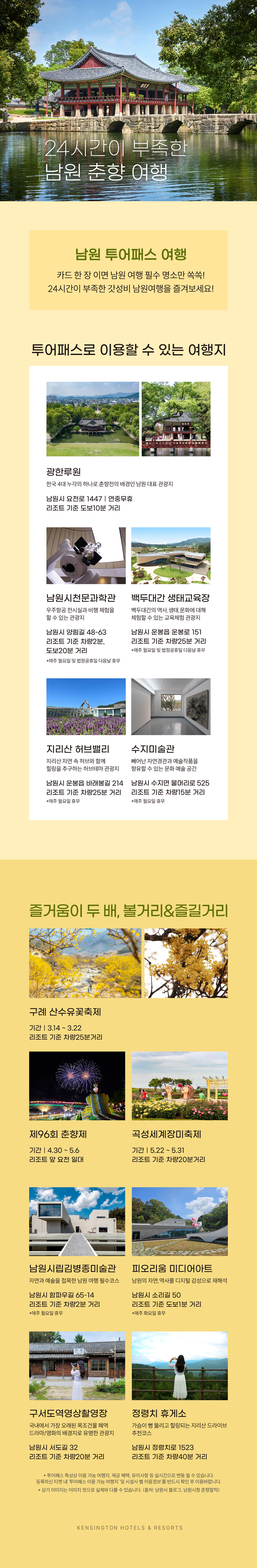 : 광한루원·춘향테마파크·지리산 허브 밸리·수지미술관·백두대간 생태 교육 전시관·항공우주천문대