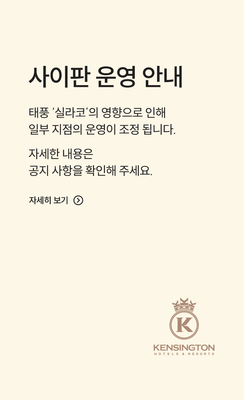 켄싱턴호텔 사이판은 다양한 테마의 수영장을 갖추어 모든 연령대가 즐거운 물놀이를 즐길 수 있습니다. 수심 1.2m의 패밀리 풀과 최대 수심 0.6m의 키즈 풀, 워터 슬라이드 2대와 어린이 전용 키즈 슬라이드 2대, 수심 0.7m의 스플래시 풀, 그리고 바다 전망의 인피니티 풀까지 다채로운 풀 시설을 경험해 보세요.