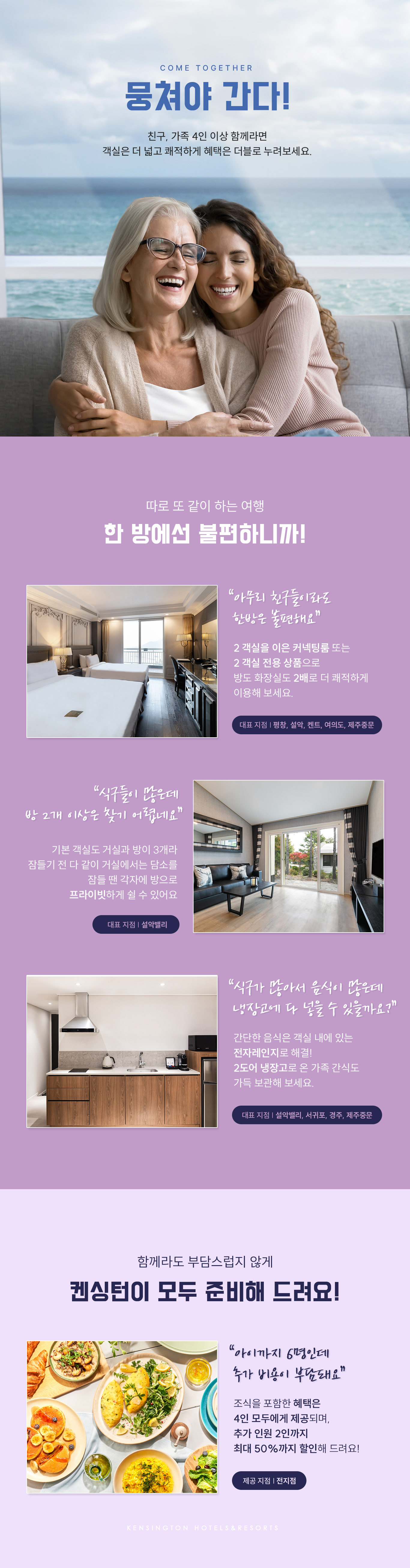최대 3대 가족까지 더 넓고 쾌적하게 여행을 즐겨보세요.