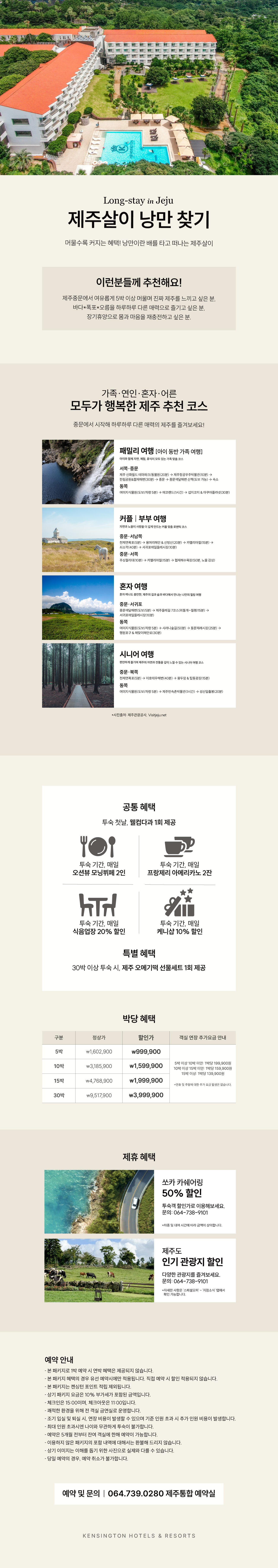 켄싱턴 제주중문 투숙객 할인 혜택을 받아보세요.