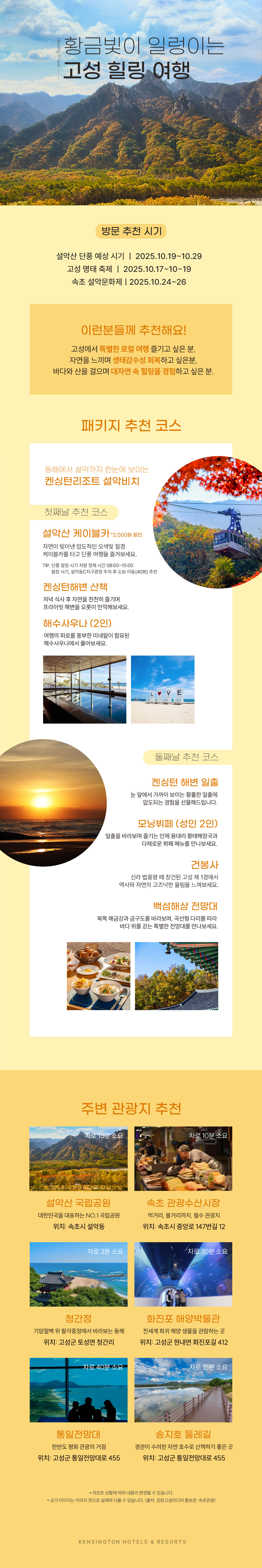 ※ 케이블카 이용 불가 시 대체 혜택 제공어려우며, 기타 문의는 설악비치점으로 부탁드립니다.