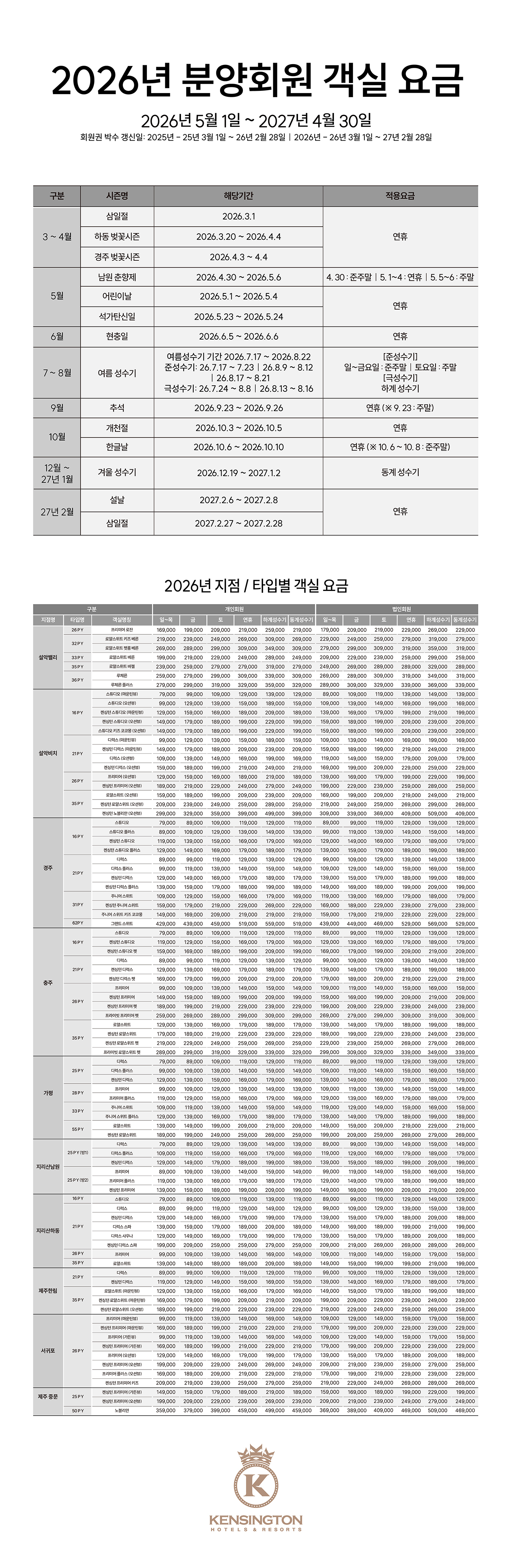 home 고객지원 공지사항 자주하는 질문 1:1문의 이용문의 자료실 당첨자 발표 고객지원 공지사항 자주하는 질문 1:1 문의 이용문의 자료실 당첨자 발표 [분양회원] 2026년 리조트 객실 요금 안내 전체 분양회원 2025. 12. 08 첨부파일 분양회원_객실요금표(26년).pdf 목록