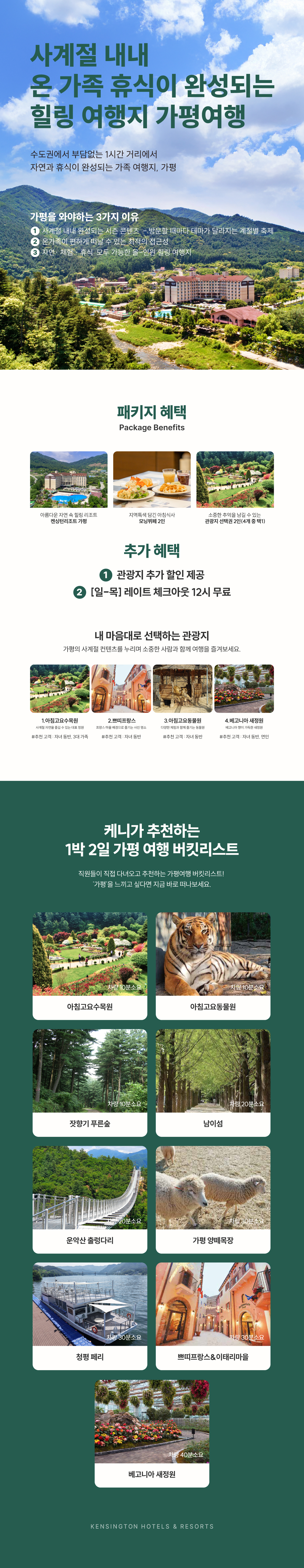 관심상품 공유하기[패밀리 패키지] 객실 1박 + 조식 2인 + 케니 추천 가평 관광지 2인 입장권★아침고요수목원★아침고요동물원★쁘띠프랑스★베고니아 새정원 (4곳 중 택1) +