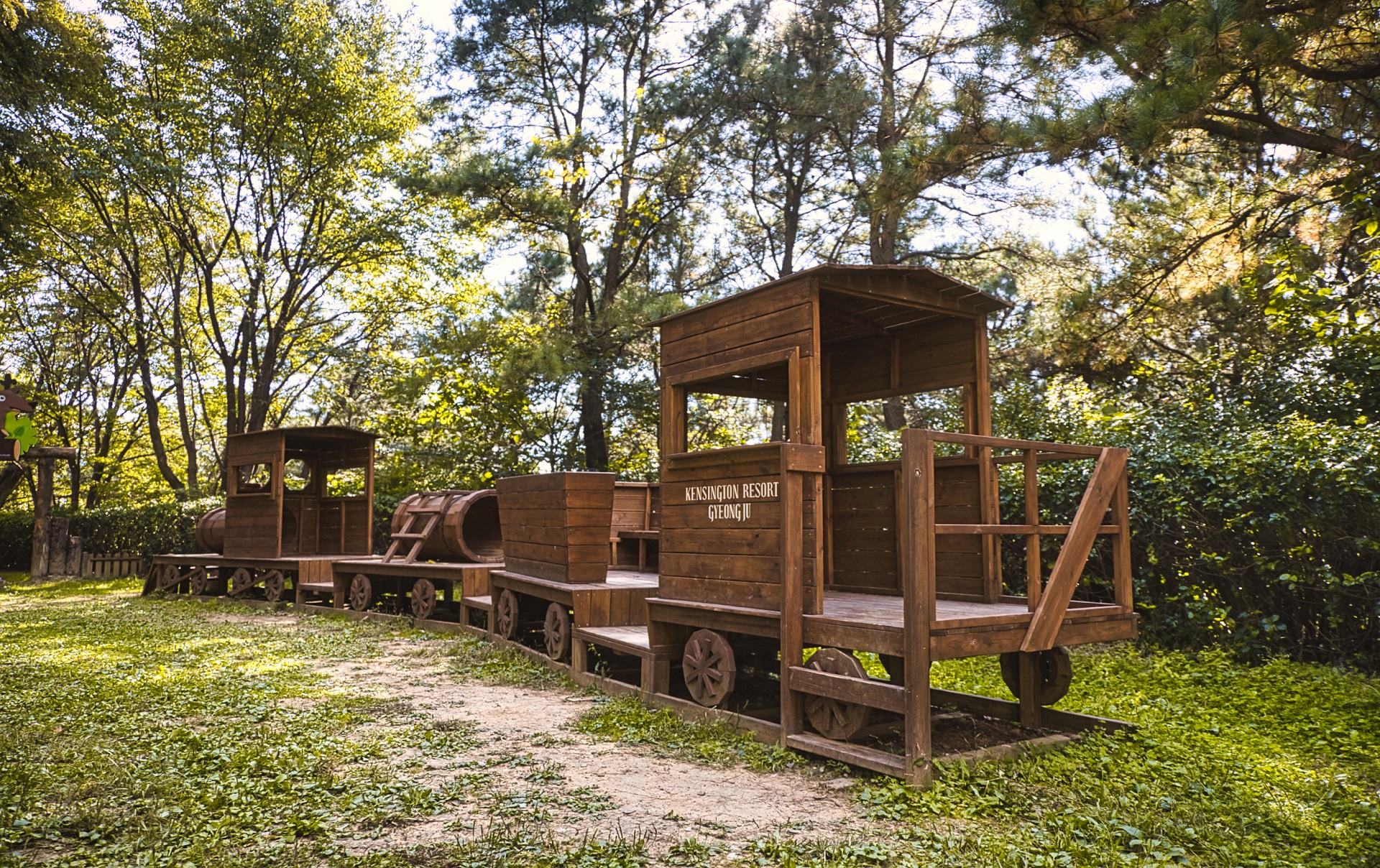 초록이 어우러진 야외 공간에서